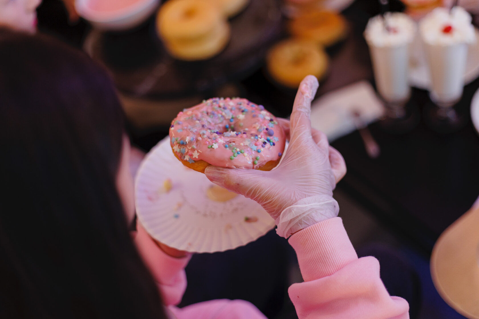 Сладкий пончик украшенный по собственному дизайну. Вкусный, таящий шоколад, разнообразие посыпок, любимый всеми топпинги и большой выбор начинка!